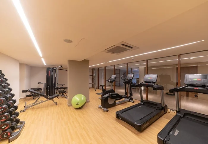 Ender du med at spise lidt for meget, så bare rolig. Du kan holde formen ved lige i fitnesscenteret, som har et bredt udvalg af forskellige træningsmaskiner og vægte.
