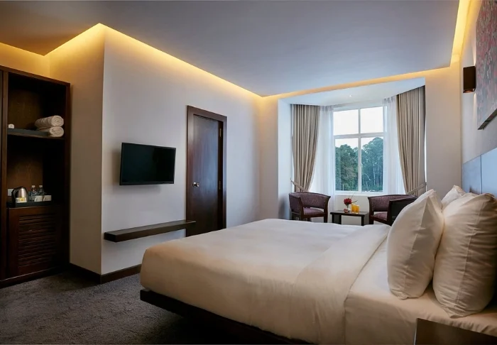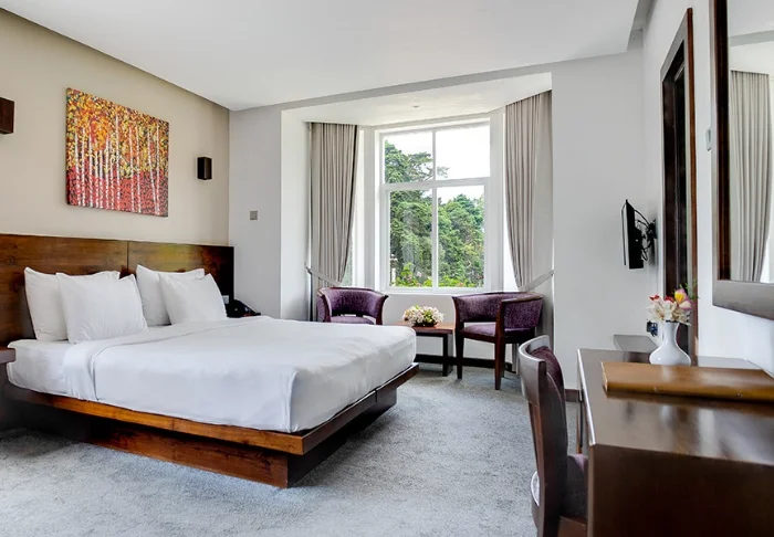 Som udgangspunkt indlogeres du i et Deluxe-værelse, der er både rummeligt og indrettet i afdæmpede farver og varme toner. Her er garderobeskab, skrivebord, et lille siddeområde og badeværelse med bruseniche og medfølgende toiletartikler. Da klimaet i højlandet kan være køligt, er værelserne udstyret med varmeapparat. Derudover har du adgang til wi-fi, minibar, værdiboks samt te- og kaffefaciliteter.