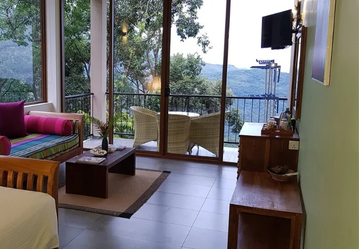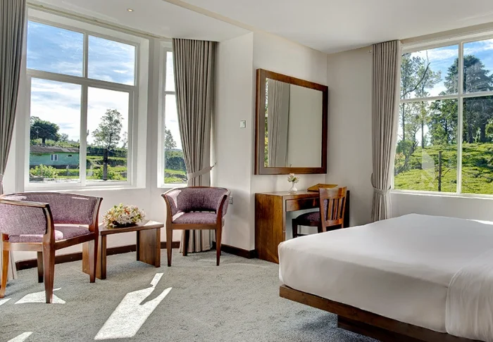 Herfra er du blot en kort gåtur fra byens hyggelige hovedgade med et væld af små butikker og gode spisesteder. Samtidig kan du nyde hotellets rolige atmosfære og betagende udsigt, der strækker sig mod både Little Adam’s Peak og Ella Rock.