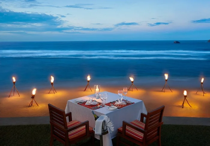 Din halvpension sørger hotellets restaurant for med et udvalg af retter fra både det vestlige og det srilankanske køkken. Om aftenen kan du bl.a. nyde duften, der langsomt breder sig fra grillen, når kokken tilbereder dagens fangst af fisk og skaldyr. Måltiderne nydes med udsigt til havet, mens bølgerne slår ind mod strandbredden nedenfor.