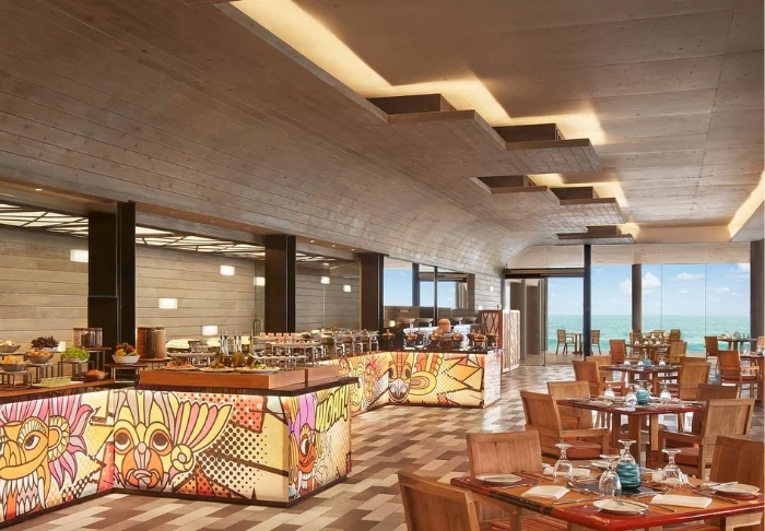 Morgenmaden serveres på Cardamom Café, der åbner op for en overdådig buffet, som byder på alt det bedste fra det lokale og internationale køkken. Her kan du også vælge at spise i løbet af dagen eller om aftenen. Ønsker du andet end den klassiske buffet, byder hotellet på flere spisesteder. Hos Lorenzo’s Pizza Bar serveres delikate pizzaer på den italienske måde, mens du kan nyde gourmetretter hos The Cinnamon Room og afrunde dagen med en drink i The Coat of Arms Bar, hvor havet giver det perfekte bagtæppe.