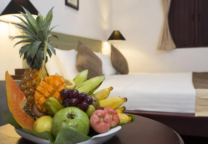 Du bor som udgangspunkt i et rummeligt Superior-værelse med rustik indretning, hvor mørke træmøbler og farverige tekstiler skaber en varm og lokal stemning. Fra din private balkon har du udsigt til haven og havet, hvor palmerne svajer i vinden, og lyden af bølgerne danner bagtæppe for din morgenkaffe eller en stille stund med en bog. Alle værelser har aircondition, wi-fi, loftsvifte, værdiboks, minibar, telefon, tv, te- og kaffefaciliteter samt badeværelse med bruseniche, badekåbe og tøfler samt tilhørende toiletartikler.