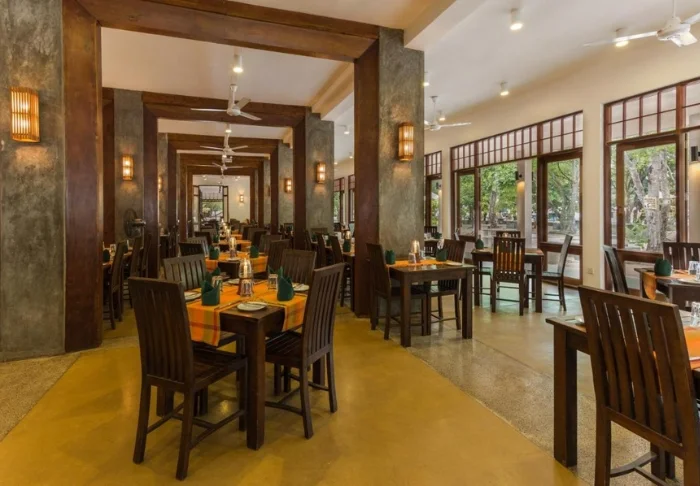 I hotellets restaurant kan du nyde din morgenmad i rolige omgivelser med både vestlige og srilankanske retter. Her kan du også vælge at spise dagens andre måltider, da kokkene står klar til at tilberede gode retter med friske grøntsager og krydderurter fra de nærliggende landsbyer. Når aftenen falder på, kan du runde dagen af med en lokal øl fra baren med kig ud over hotellets have og baggrundens grønne rismarker.