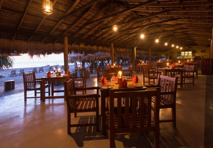 Med halvpension er du sikret gode smagsoplevelser på hotellets restaurant, hvor du kan spise med udsigt til stranden. Her serveres både srilankanske og vestlige retter, ofte med friskfanget fisk og skaldyr på menuen. Om lørdagen kan du glæde dig til en stemningsfuld BBQ-middag under åben himmel. Dagen rundes bedst af i loungebaren, hvor du kan nyde en kold drink, mens mørket falder på over Nilavelis strandparadis.
