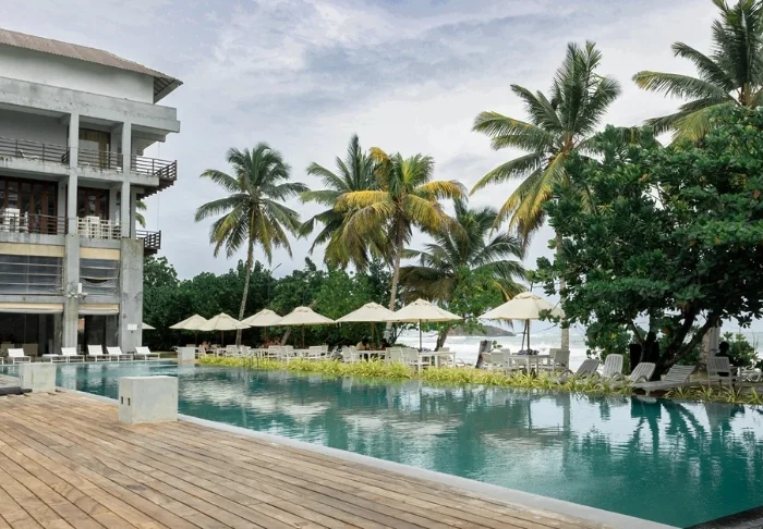 Hotellet breder sig over en lille halvø med Hikkaduwa Beach og Turtle Beach på hver sin side. Her kan du bade dagen lang eller finde snorkelmasken frem, for der er god sandsynlighed for at opleve både havskildpadder, farverige fisk og små, ufarlige revhajer.