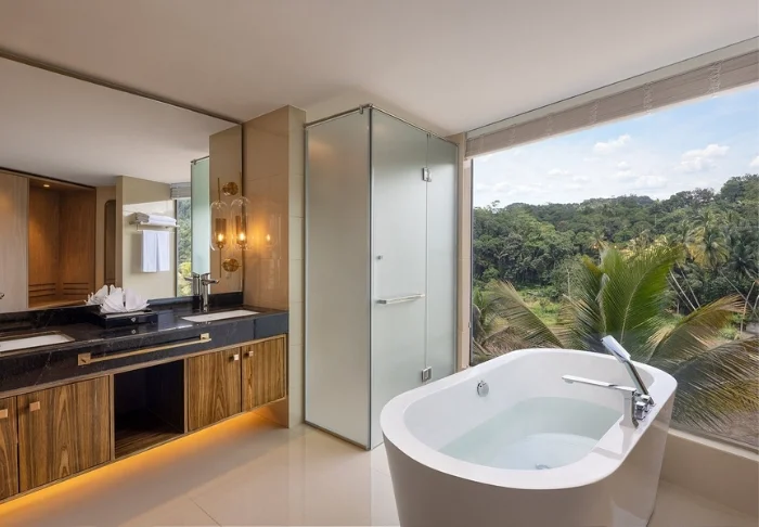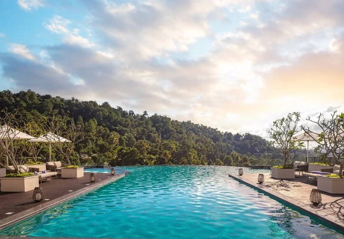 Luksus og velvære går igen i hotellets udbud af faciliteter, som tæller en atmosfærefyldt spaafdeling, et moderne fitnessrum med betagende udsigt samt et højtbeliggende poolområde. Her kan du trække dig hen, når du skal lade op efter en begivenhedsrig dag med Kandys seværdigheder. Fra den indbydende infinitypool har du udsigt over grønne bakker og adgang til bløde liggestole og en poolbar, der byder på kolde drikke.