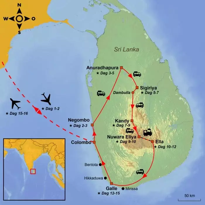 Du begynder dagen i første række til Negombos gyldne sandstrand, inden rejsen går mod nordøst til Sri Lankas kulturelle trekant, hvor du får mulighed for at dykke ned i landets rige historie og kulturarv.