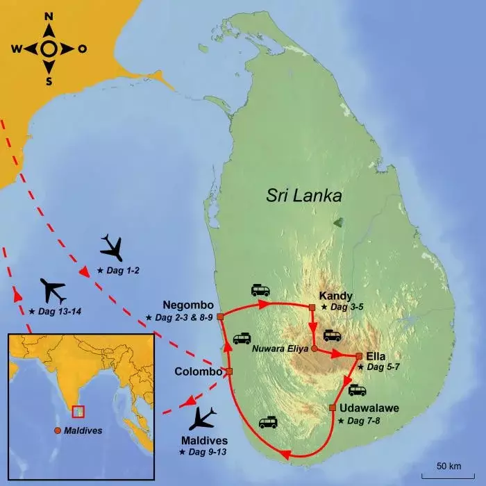Rejsen begynder i den farverige ferieby Negombo og går mod Sri Lankas centrale højland, hvor eventyret for alvor folder sig ud. Her oplever du landets historie og kultur i Sri Lankas kulturelle hovedstad, når du besøger en af områdets bedste tefabrikker. Nyd også byens stemningsfulde sø og besøg Tandens Tempel eller Den Kongelige Botaniske Have.
