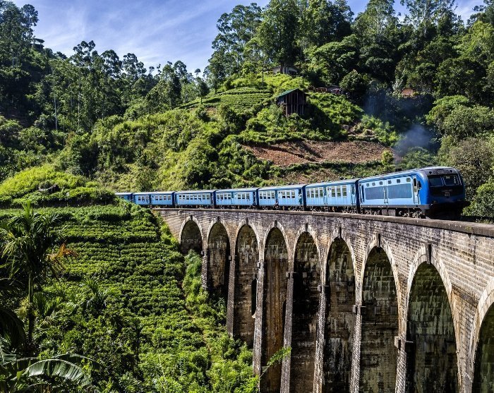Med ankomst til Nanu Oya stiger du ombord på det klassiske tog, der snart snegler sig frem i Sri Lankas grønne højland. Find dig godt til rette og nyd dine medbragte snacks, mens toget tøffer gennem blide sving og åbenbarer en udsigt, der langsomt folder sig ud med lysegrønne teplantager, tågedækkede bjergtoppe og små landsbyer, hvor børn gladeligt smiler og vinker.