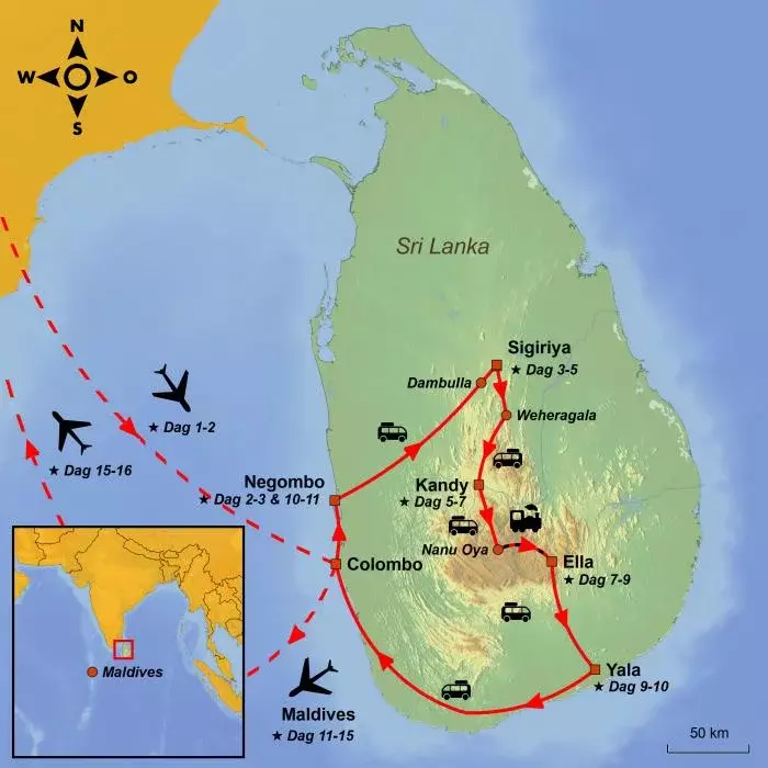 Denne rejse forener nogle af Sydasiens smukkeste kontraster, fra Sri Lankas farverige kulturarv og grønne højland til Maldivernes kridhvide strande og turkisblå laguner.