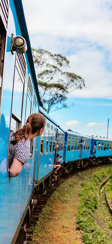 Med ankomst til Nanu Oya stiger du ombord på det klassiske tog, der snart snegler sig frem i Sri Lankas grønne højland. Find dig godt til rette og nyd dine medbragte snacks, mens toget tøffer gennem blide sving og åbenbarer en udsigt, der langsomt folder sig ud med lysegrønne teplantager, tågedækkede bjergtoppe og små landsbyer, hvor børn gladeligt smiler og vinker.