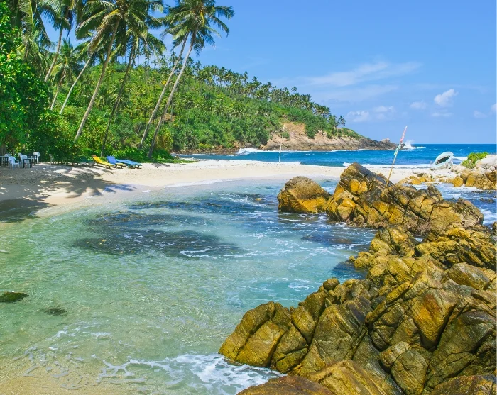 Til slut går turen mod Mirissa, der byder på en afslappet atmosfære og tre maleriske bugter med smukke sandstrande og svajende kokospalmer. Her venter dig dage med tempoet helt i bund, medmindre du lader dig friste af Mirissas udbud af store oplevelser over og under havets overflade som hvalsafari, snorkling eller surfing.
