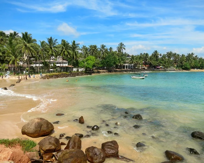 Mirissa er forholdsvis rolig og består af tre små bugter med svajende kokospalmer ind over strandene, som er utroligt smukke og nærmest paradisagtige. På trods af at det er en af Sri Lankas mest populære badedestinationer, hersker her fortsat en dejlig, afslappende atmosfære, hvor man nemt kan komme ned i gear.