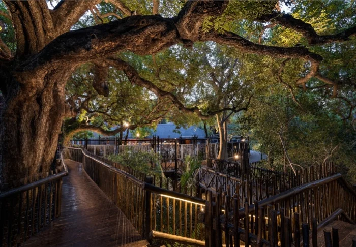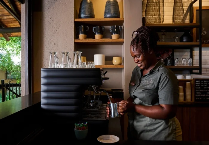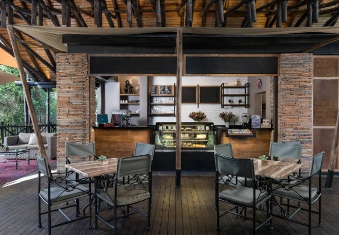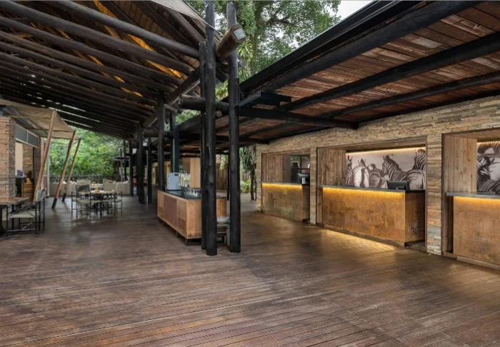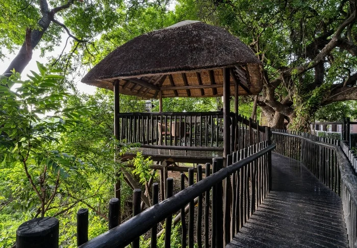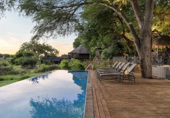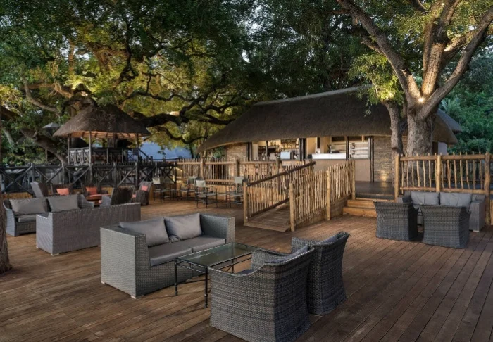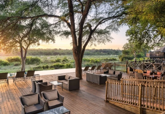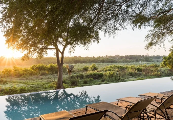 Fra det hyggelige loungeområde ved den ene pool, har du udsigt mod Kruger Nationalpark på den anden side af Sabie River. Helt tidligt om morgenen eller sidst på dagen er lyset helt fantastisk, og er du heldig kommer der måske en flok elefanter ned for at bade i floden.
