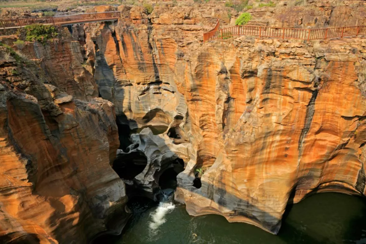 I dag skal du på en meget scenisk heldagstur langs Panoramaruten i de dramatiske Drakensbjerge. Drakensbjergene er røde og danner en fantastisk kontrast til de grønne træer og planter. Du oplever Blyde River Canyon, der er op mod 700 m dyb og 60 km lang og dermed er verdens tredje største canyon. Du gør stop ved de tre vigtigste udsigtspunkter langs kløften; God’s Window, Bourke’s Luck Potholes og De Tre Rondaveller. De Tre Rondaveller er 3 meget smukke og markante klippeformationer, der i udseende minder om de runde hytter, som tidligere fandt i lokale landsbyer mange steder i det sydlige Afrika. Der er også mange vandfald på Panomararuten, og du gør gør stop ved et af dem. Det kan være Berlin Falls, hvor vandet falder 150 meter ned i en sø. Eller måske er stoppet ved Lisbon Falls, der ligger hvor Blyde River deler sig i to og derefter falder 92 m ned over en næsten lodret klippe og igen samles til et løb. Der er mange andre vandfald, og guiden afgør hvor stoppet bliver. Et af dagens mest spektakulære besøg vil klart være Bourke’s Luck Potholes, der er cylindriske huller slidt ned i klipperne af vand og sand gennem tusindvis af år. Du kan komme helt tæt på dette naturfænomen langs nogle broer, der er bygget hen over de særegne huller.