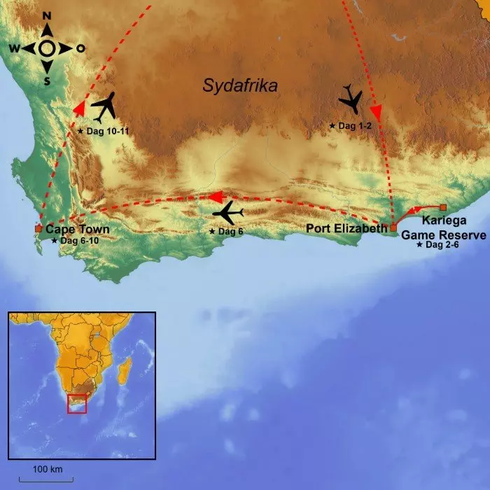 Slip for malariapillerne på Eastern Cape og få en ”all inclusive” safarioplevelse, bushwalk og besøg i lokal landsby. Slut rejsen af med storbyferie i smukke Cape Town.