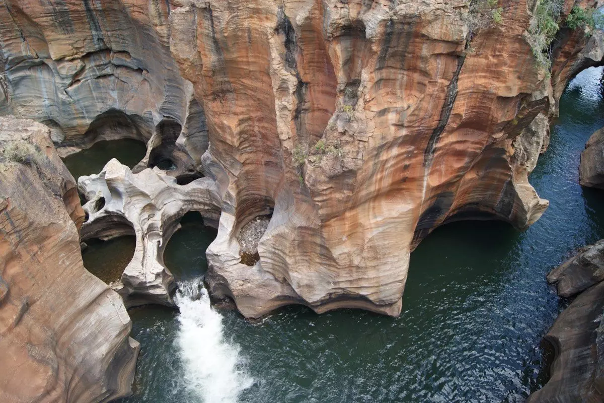 I dag skal du på en meget scenisk heldagstur langs Panoramaruten i de dramatiske Drakensbjerge. Drakensbjergene er røde og danner en fantastisk kontrast til de grønne træer og planter. Du oplever Blyde River Canyon, der er op mod 700 m dyb og 60 km lang og dermed er verdens tredje største canyon. Du gør stop ved de tre vigtigste udsigtspunkter langs kløften; God’s Window, Bourke’s Luck Potholes og De Tre Rondaveller. De Tre Rondaveller er 3 meget smukke og markante klippeformationer, der i udseende minder om de runde hytter, som tidligere fandt i lokale landsbyer mange steder i det sydlige Afrika. Der er også mange vandfald på Panomararuten, og du gør gør stop ved et af dem. Det kan være Berlin Falls, hvor vandet falder 150 meter ned i en sø. Eller måske er stoppet ved Lisbon Falls, der ligger hvor Blyde River deler sig i to og derefter falder 92 m ned over en næsten lodret klippe og igen samles til et løb. Der er mange andre vandfald, og guiden afgør hvor stoppet bliver. Et af dagens mest spektakulære besøg vil klart være Bourke’s Luck Potholes, der er cylindriske huller slidt ned i klipperne af vand og sand gennem tusindvis af år. Du kan komme helt tæt på dette naturfænomen langs nogle broer, der er bygget hen over de særegne huller.