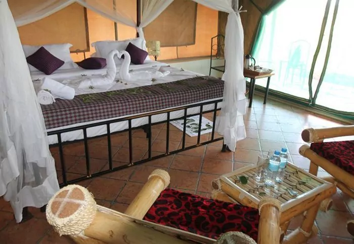 Lodgen består af 10 luksustelte, der er bygget op omkring en stålskal med kanvasvægge, højt til loftet og murede badeværelser i forlængelse af selve værelset. Alle 10 luksustelte er bygget på hver sin individuelle platform med en stor træterrasse, hvorfra du har den flotteste udsigt til saltvandssøen, Lake Eyasi.