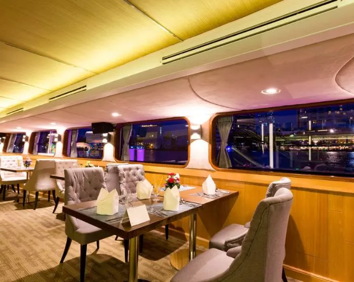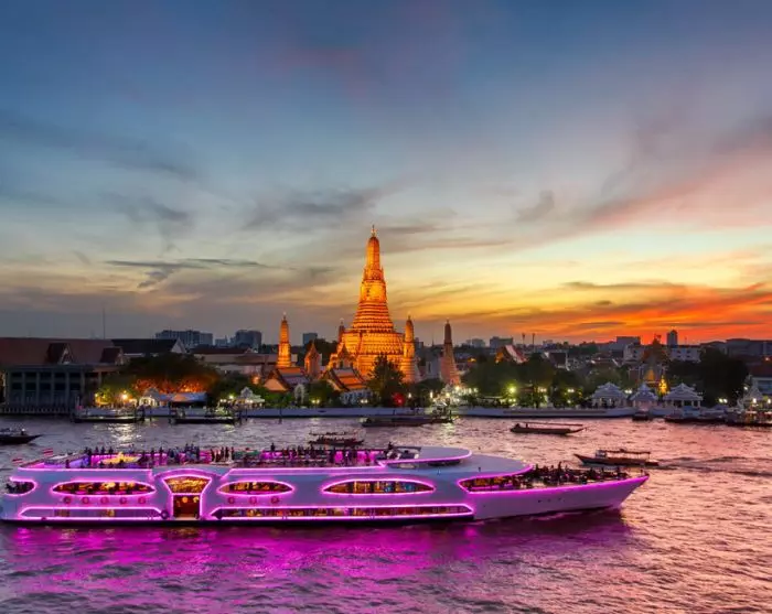 Tag med på et af de populære aftencruises på Chao Praya-floden, som inkluderer velkomstdrink, middag og underholdning.