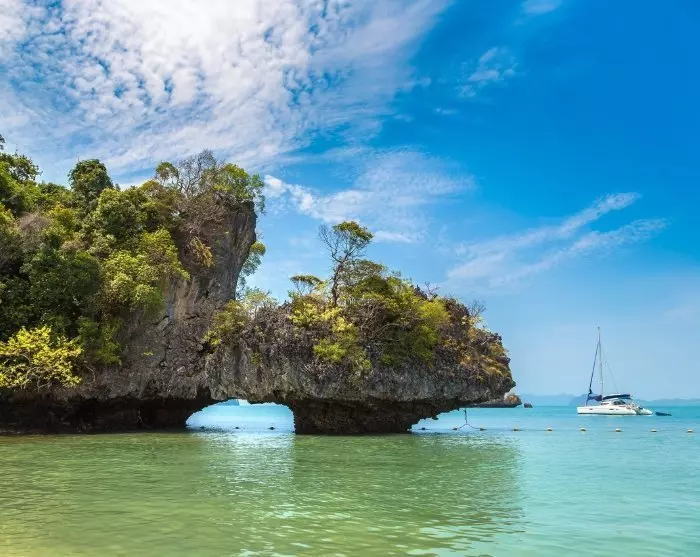 Først besøger du Hong Island, der ligger mellem Krabi og Koh Yao-øerne. Hong Island er en del af Than Bok Khorani Nationalpark og kendt for sin betagende skønhed. Hong Island består af to billedskønne strande med fint, hvidt sand og krystalklart vand, som er omgivet af dramatiske kalkstensklipper. Resten af øen er dækket af frodig jungle, hvor forskellige plante- og dyrearter trives.