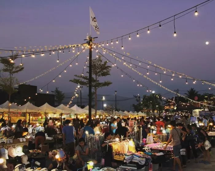 Aftensmaden nydes på det hippe marked, Chillva, der ligger en kort køretur væk. Her kan du smage på markedets lækre, lokale delikatesser som f.eks. saftige satayspyd, grillet hummer, velsmagende sushi og desserten sticky rice med mango. Slå dig ned på en plastik skammel og nyd atmosfæren hvor levende musik ofte fuldender stemningen.