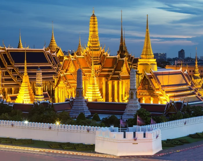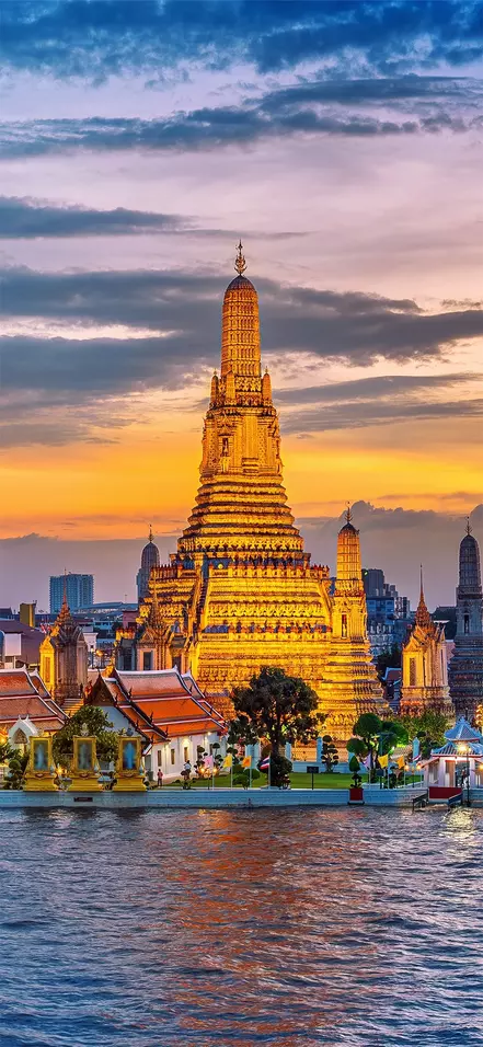 Rejsen starter i Bangkok, hvor du får et spændende indblik i byens mangfoldige madscene på en stemningsfuld streetfood-tur i tuk-tuk. Her smager du autentiske, lokale retter, udforsker skjulte perler og nyder udsigten til det oplyste tempel Wat Arun fra en rooftop-bar ved Chao Phraya-floden, mens både glider forbi i pendulfart.