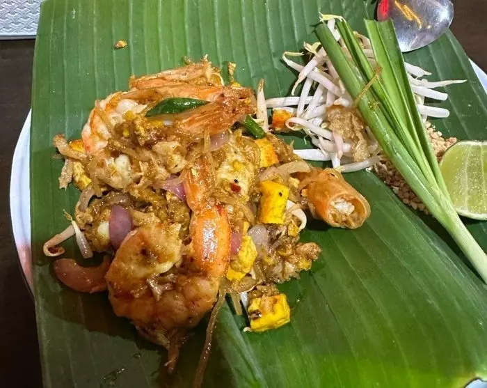 Du ankommer til en populær Pad Thai-restaurant, der er klassificeret som en Bib Gourmand-restaurant. Bib Gourmand er en udmærkelse, som Michelinguiden tildeler restauranter, der serverer veltillavet mad til rimelige priser. Her får du serveret den velsmagende nationalret på bananblade, og du kan også komme med i køkkenet og se, hvordan det hele foregår.