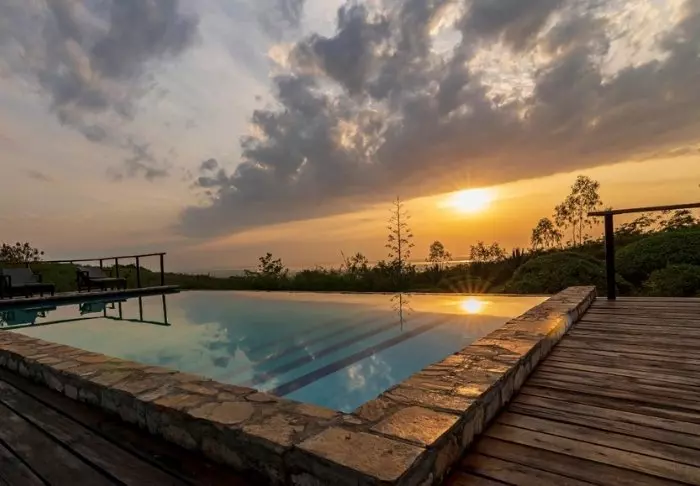 Poolen er bygget på et trædæk i forlængelse af græsplænen og byder på både solsenge og udsigt. Om aftenen tændes der op i bålet, og med en lokal øl i hånden kan der udveksles historier fra dagens safari.