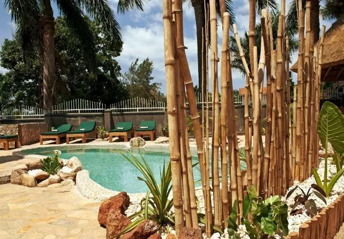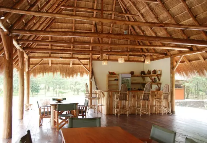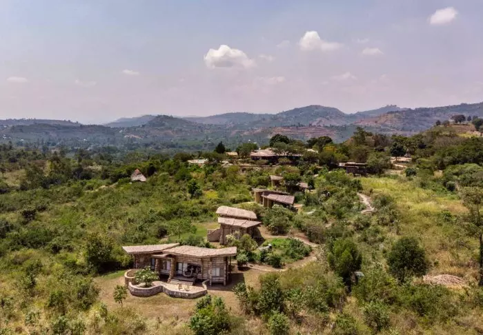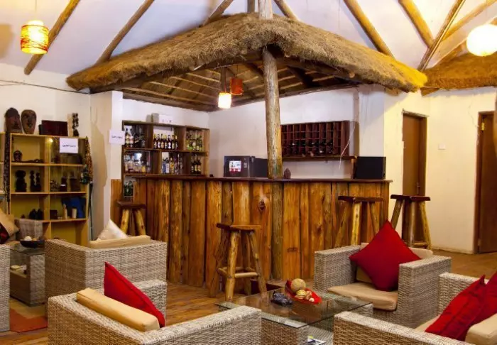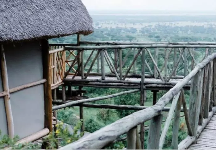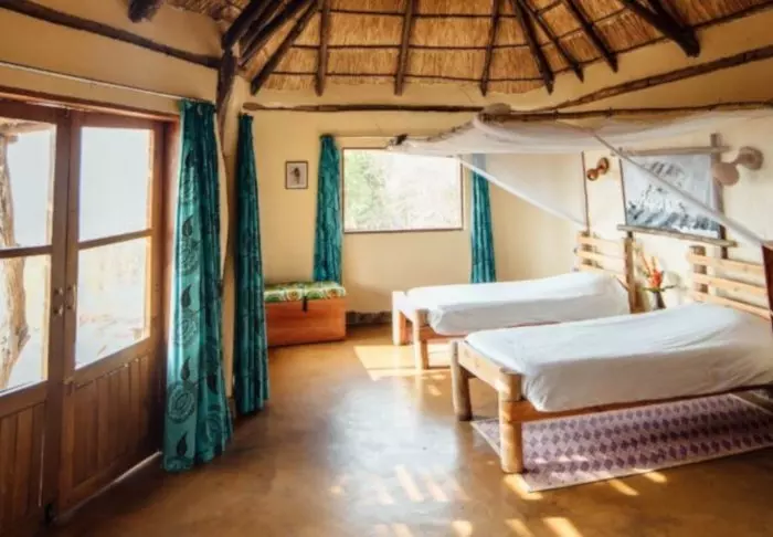 Lodgen består af ”bandas”-hytter, der ligner karakteristiske hytter fra en lille afrikansk landsby. Fra hytterne, der er fordelt på skråningen, og hvoraf en del af dem er opdelt i etager, er der en smuk udsigt ud over sletterne og det traditionelle afrikanske landskab. Hytterne gemmer på 18 moderne værelser indrettet med behagelige senge og privat badeværelse.