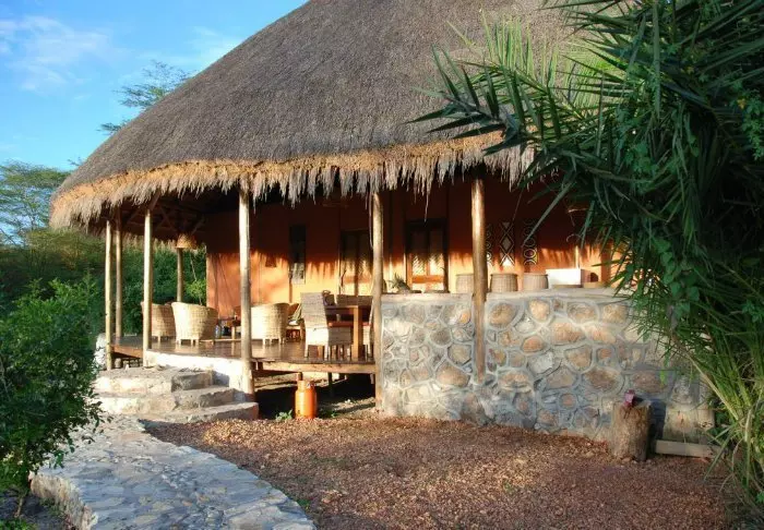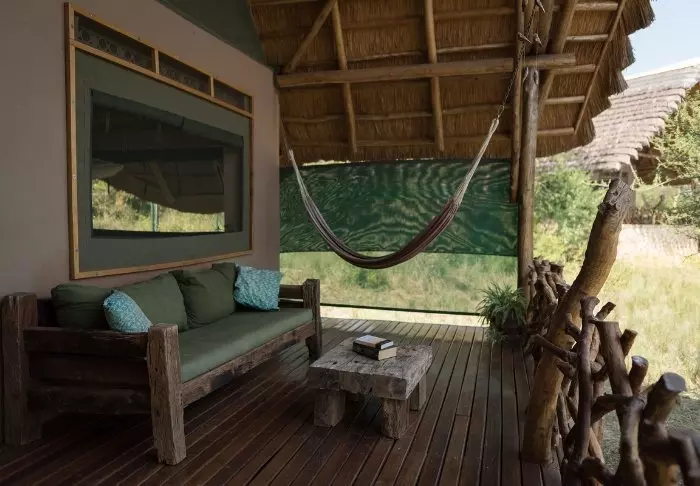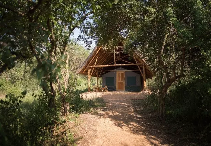 Lodgen består både hytter og telte, som alle er charmerende indrettet og har eget bad/toilet og egen veranda. Der er udelukkende brugt lokale materialer til lodgen og alt er bygget af lokale håndværkere, så indtægterne er kommet de lokale samfund i området til gode.