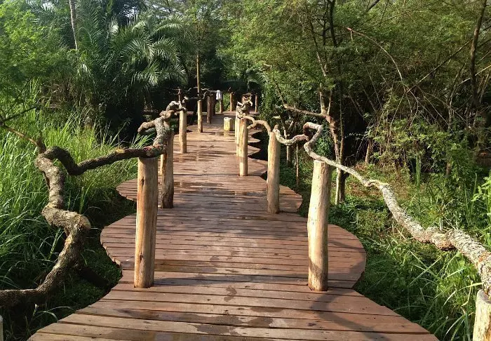 Fra den stråtækte restaurant og bar kan du nyde den smagfulde hjemmelavede mad eller en dejlig drink, mens du beundrer den maleriske natur og den skønne lille naturlige sø.