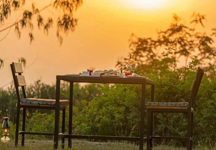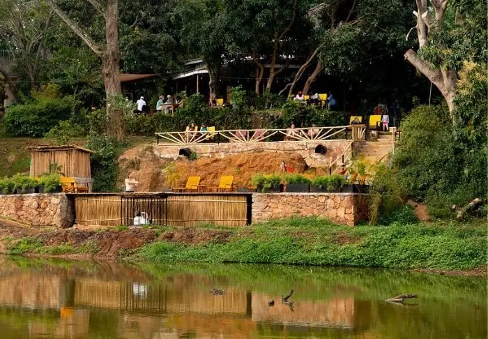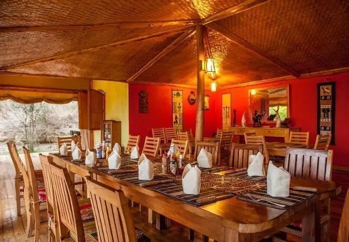 Også i lodgens hyggelige stråtækte restaurant på toppen af bjerget kan du betragte de prægtige dyr ved vandhullet og nyde de storslåede solnedgange over parken, mens du indtager en af de lækre retter lavet af lokale råvarer og afgrøder fra lodgens egen have. En sval brise fra Kachera-søen gør desuden restauranten til det ideelle sted at køle af på en varm dag.