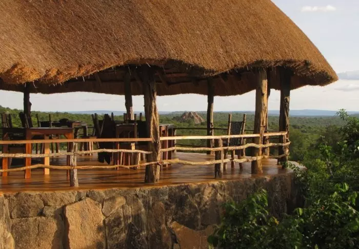 Udsigten fra restauranten tager pusten fra de fleste. Et vandhul tæt ved tiltrækker ofte tørstige dyr ved solnedgangstid, så ofte nydes middagen med udsigt til zebraer og impalaer.