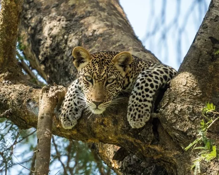 Du kører rundt på savannen og ved kratersøer i jagten på leoparder, løver, hyæner, antiloper og mange andre dyr. Efter safarien vender du tilbage til hotellet, hvor morgenmaden venter. De varme timer midt på dagen kan bruges på afslapning ved poolen.