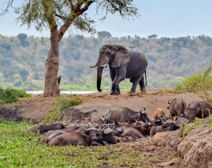 Det er tid til at tage afsked med Kibale og køre mod rejsens næste nationalpark: Queen Elizabeth. Landskabet ændrer sig dramatisk undervejs i dag. Kibales tætte regnskov afløses af kratersøer og senere savanne, og indimellem vil du have udkig til de sommetider sneklædte Rwenzori-bjerge – et smukt syn mod de grønne bakker omkring Kibale.