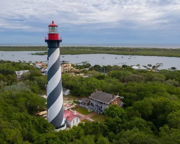 Afslut dagen ved det stribede fyrtårn ved St. Augustine Lighthouse & Maritime Museum, hvor du kan glæde dig til en smuk udsigt over byen og havet fra toppen.