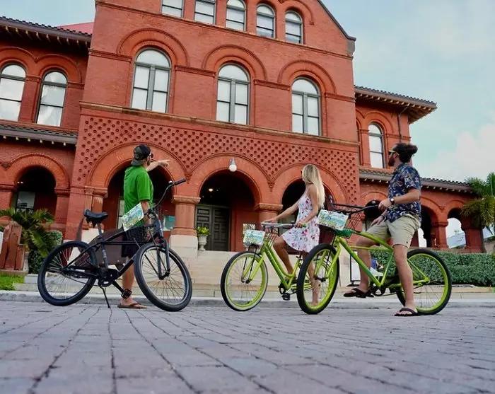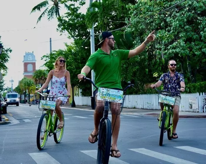 Turen inkluderer: autoriseret lokal guide, cykelleje, hjelm, cykelkurv, 1 flaske vand, 1 stk. Key Lime Pie