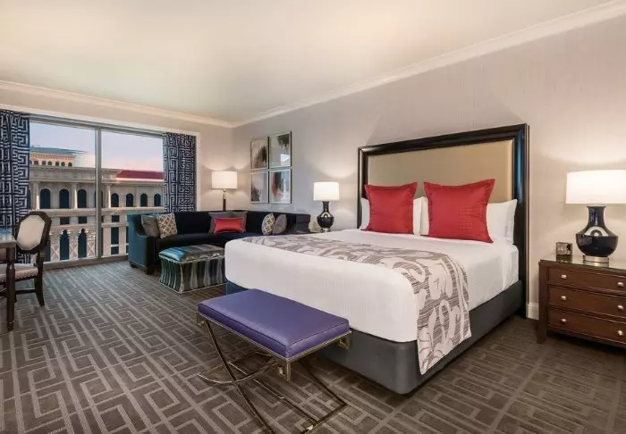 På Caesars Palace finder du knap 4.000 værelser og suiter, der er indrettet i moderne stil. Værelserne tilbyder TV, værdiboks, aircondition, kaffe – og te faciliteter, og et tilhørende badeværelse med hårtørrer og et udvalg af gratis toiletartikler.