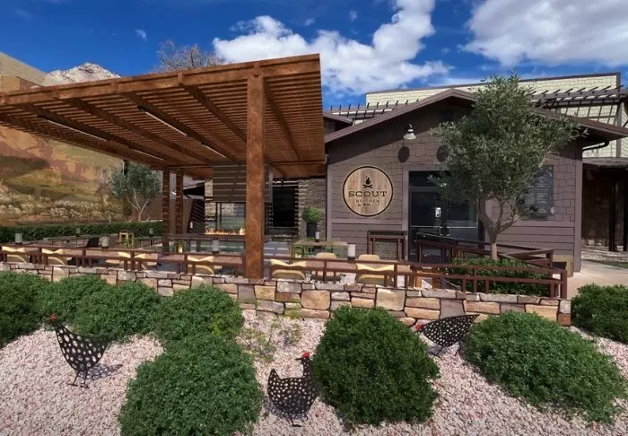 På hotellets egen restaurant, Scout Bar & Grill, kan du nyde både morgenmad og aftensmad (mod betaling), og du kan også fordøje dagens indtryk med en forfriskning i baren.