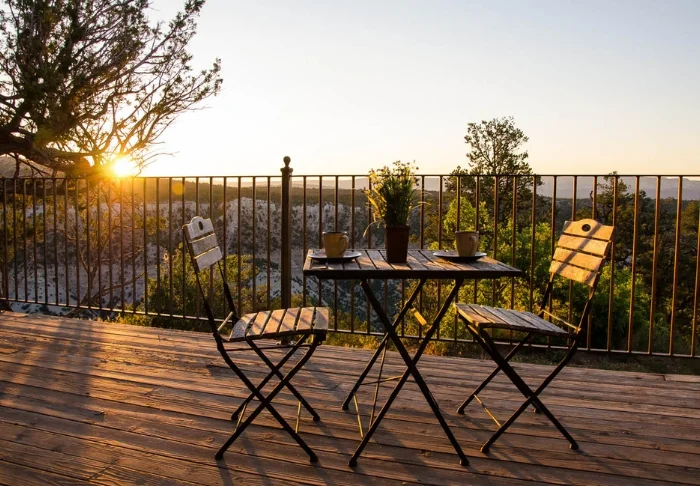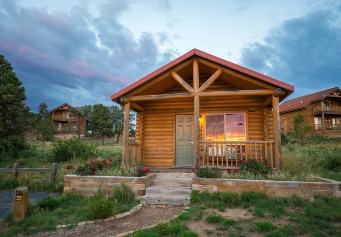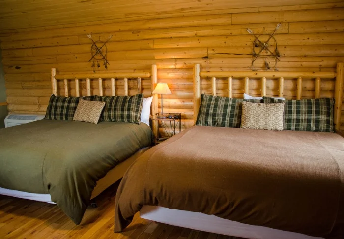 Du bor i en af ranchens private bjælkehytter, der til trods for deres rustikke udtryk tilbyder komfortable, moderne faciliteter indenfor. Her kan du lave dig en kop kaffe og en bid mad i det minimalistiske køkken med kaffemaskine, mikroovn og køleskab og nyde det på din terrasse eller veranda med udsigt til den smukke natur. Der findes desuden faciliteter som aircondition, gratis Wi-Fi, cafébord og stole indenfor samt eget badeværelse.