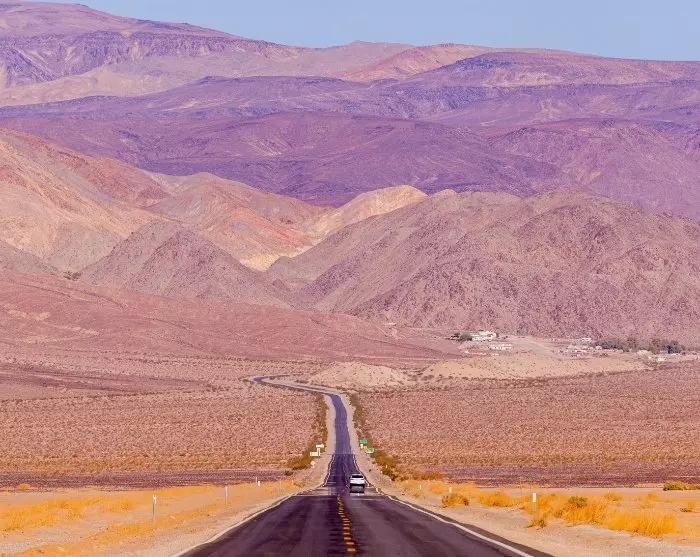 Du kan vælge at køre den smukke afstikker gennem en af USA’s største nationalparker, Death Valley, der byder velkommen med temperaturer på over 50 °C, samt smukke, golde landskaber.