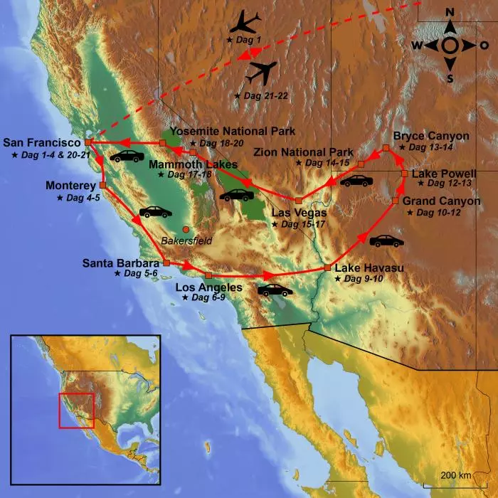 Tag med på en kør-selv-rejse gennem det vestlige USA, hvor højdepunkterne ligger som perler på en snor. Dette er rejsen for dig, der ønsker at få de mest populære natur- og storbyoplevelser i én og samme rejse i staterne Californien, Arizona, Utah og Nevada.