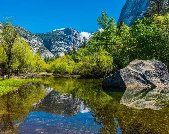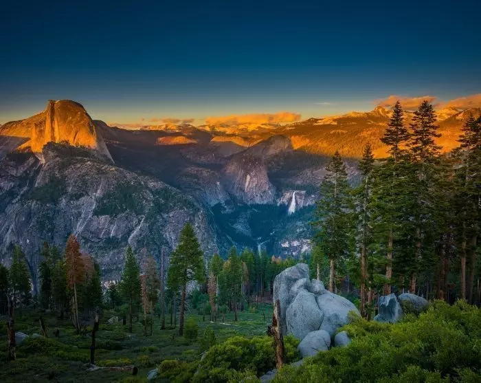 Yosemite Nationalpark strækker sig over et stort område på over 3.000 km2, og her venter storslået natur med alt fra vandfald, kæmpetræer og gletsjerskabte bjerge.