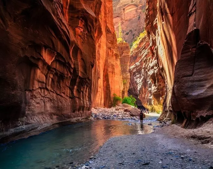 Ved ankomst til Zion Nationalpark kan du med fordel gøre stop ved Visitor Center, hvor du kan tjekke vandreruter, aktuelle vejrforhold og transportmuligheder rundt i selve parken. I sommermånederne kan du nemt komme rundt her med en gratis shuttlebus og hoppe af ved en af de populære vandreruter.