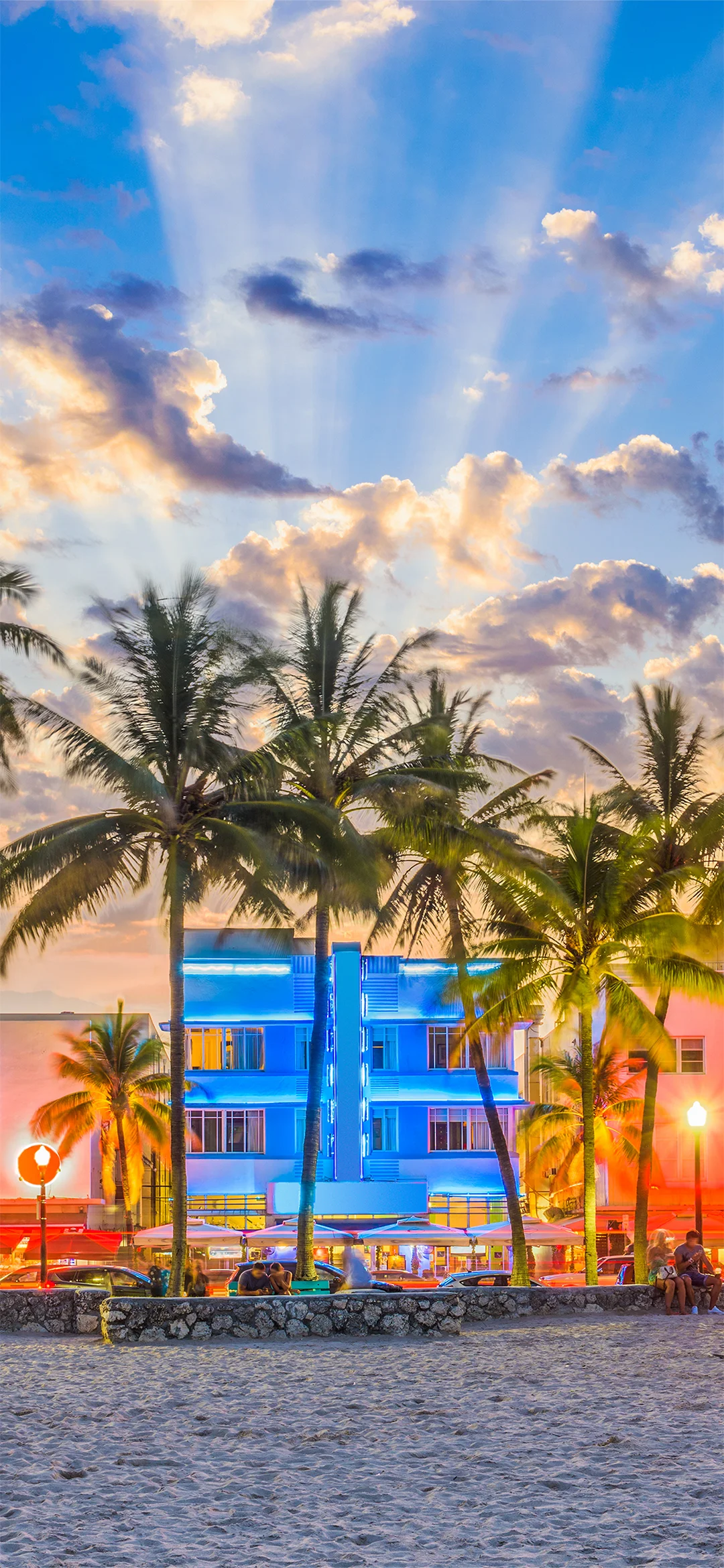 Du er ikke i tvivl om, hvornår du nærmer dig Miami, da de vidstrakte udsigter til havet afløses af bylandskab med høje huse, store biler og krydstogtskibe. Du skal bo i Miami Beach, der er kendt for sine farvestrålende huse opført i art deco-stil, strand og shopping langs den berømte gade, Collins Avenue.