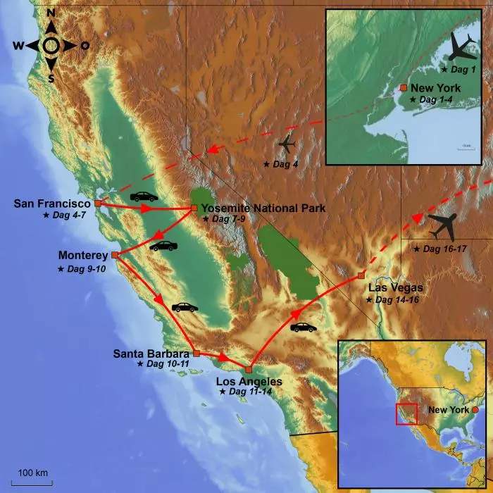 Kontrasten er slående, når du i dag forlader Californiens kystområde til fordel for Mojaveørkenen og spillebyen Las Vegas, der ligger i delstaten Nevada. Fra storbyens skyskrabere til småbyer, sandbanker og vindhekse, der ruller stille over vejen.