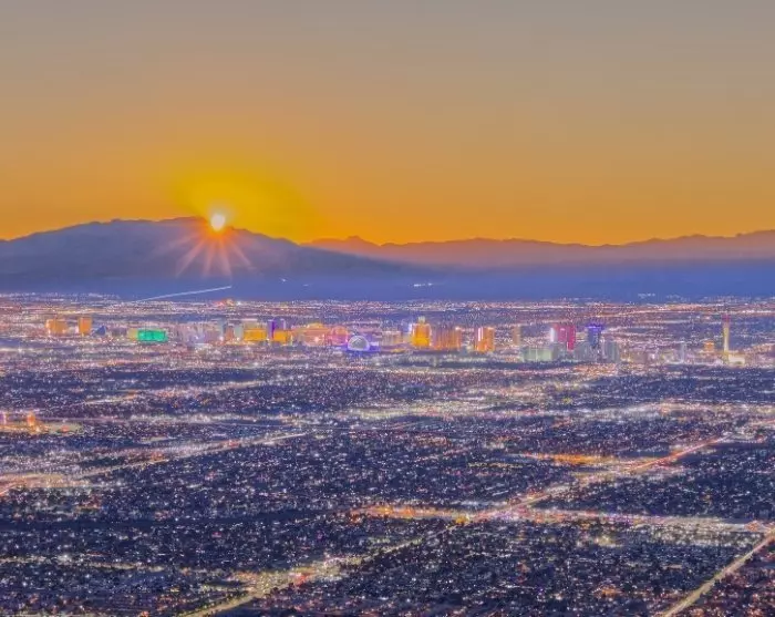 Et par timers kørsel videre fra Barstow kan du begynde at ane Las Vegas i horisonten. De finurlige bygninger der rager op over landskabet, afslører de ikoniske temahoteller, der ligger side om side på den knap 7 km lange Las Vegas Boulevard – bedre kendt som The Strip.