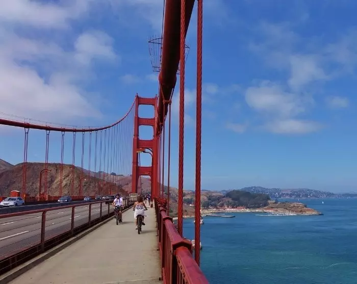Fra området omkring Fisherman’s Wharf har du flot udsyn til den ikoniske røde hængebro, Golden Gate Bridge, der blev indviet i 1937. Men intet slår følelsen af at køre over broen og se dens enorme konstruktion passere over hovedet på dig. Fra den anden side af broen venter dig også en bjergtagende udsigt til byens tage og ikke mindst fangeøen Alcatraz, der fra 1934-1963 husede USA’s hårdeste skare af kriminelle, herunder gangsteren Al Capone. Overvej at begive dig over broen på cykel, der kan lejes mange steder i området omkring Fisherman’s Wharf.