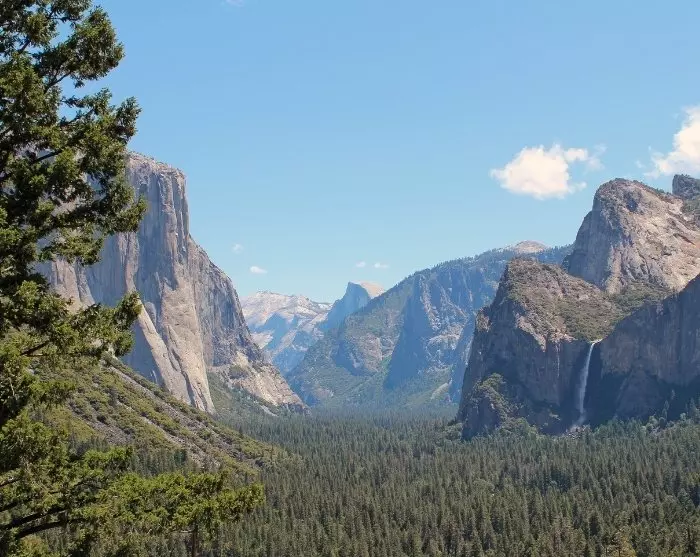Et andet af parkens uforglemmelige udsigtspunkter er Tunnel View, hvor du får et fantastisk syn over Yosemite-dalen, Bridalveil Fall samt de ikoniske bjerge El Capitan og Half Dome.