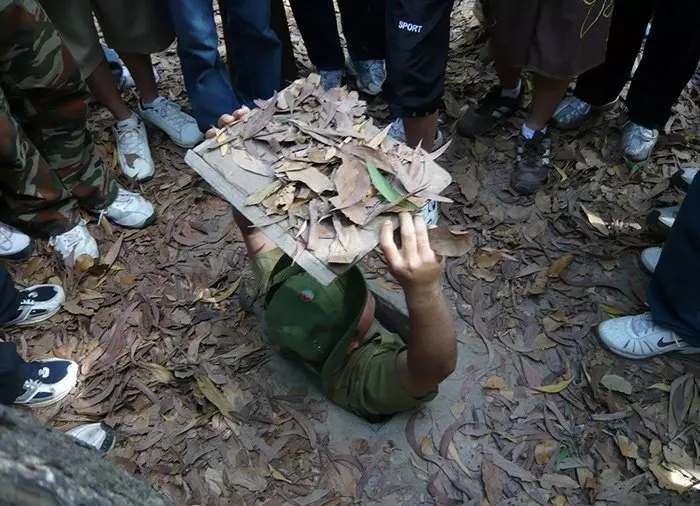 Under Vietnamkrigen byggede de nordvietnamesiske Viet Cong’er en labyrint af tunneller, der forbandt underjordiske kommandocentraler, opholdssteder, hospitaler, skoler samt træningsfaciliteter, og som fungerede som skjulested for nålestiksoperationer mod amerikanerne. Indgangshullerne til tunnelsystemet er meget små, ligesom også selve tunnelsystemet var bygget til meget slanke personer.